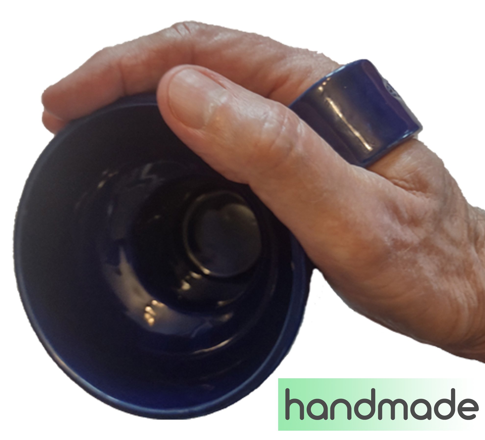 Handmade in my studio in New Orleans. Working with you, the customer, the exclusive artisan-made cup includes email consultations to best determine an appropriate width for your hand to comfortably fit under the handle. There are 12 different glazes to choose from, also discussed in the emails. Please allow for variations in glazing colors from images shown and discussed, as they are all hand-glazed. An extended time frame is needed to handcraft these cups. Each order is individually crafted by me, Gerald. Having Basal thumb arthritis in both my thumbs, I know the challenges we face when we have pain in our hands.