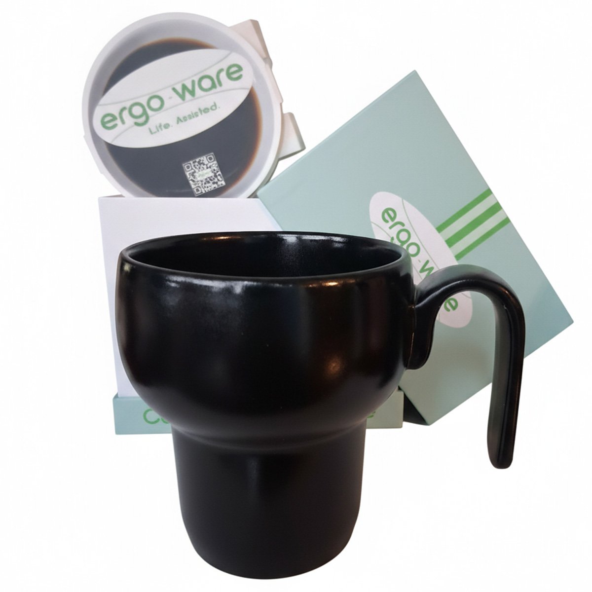 Helve Grip ErgoCup: This patented design curves over the back of the hand with the fingers wrapping around the body of the cup, allowing it to hang from the hand. It’s ideal for users with grip strength and hand mobility issues